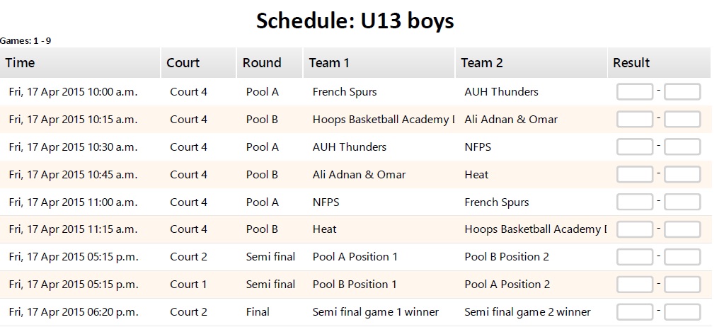 Please note that categories U13 boys, U15 boys and U15 girls will play only on Friday! Check below your game schedule, which will be soon available also on your http://www.3x3planet.com accounts.